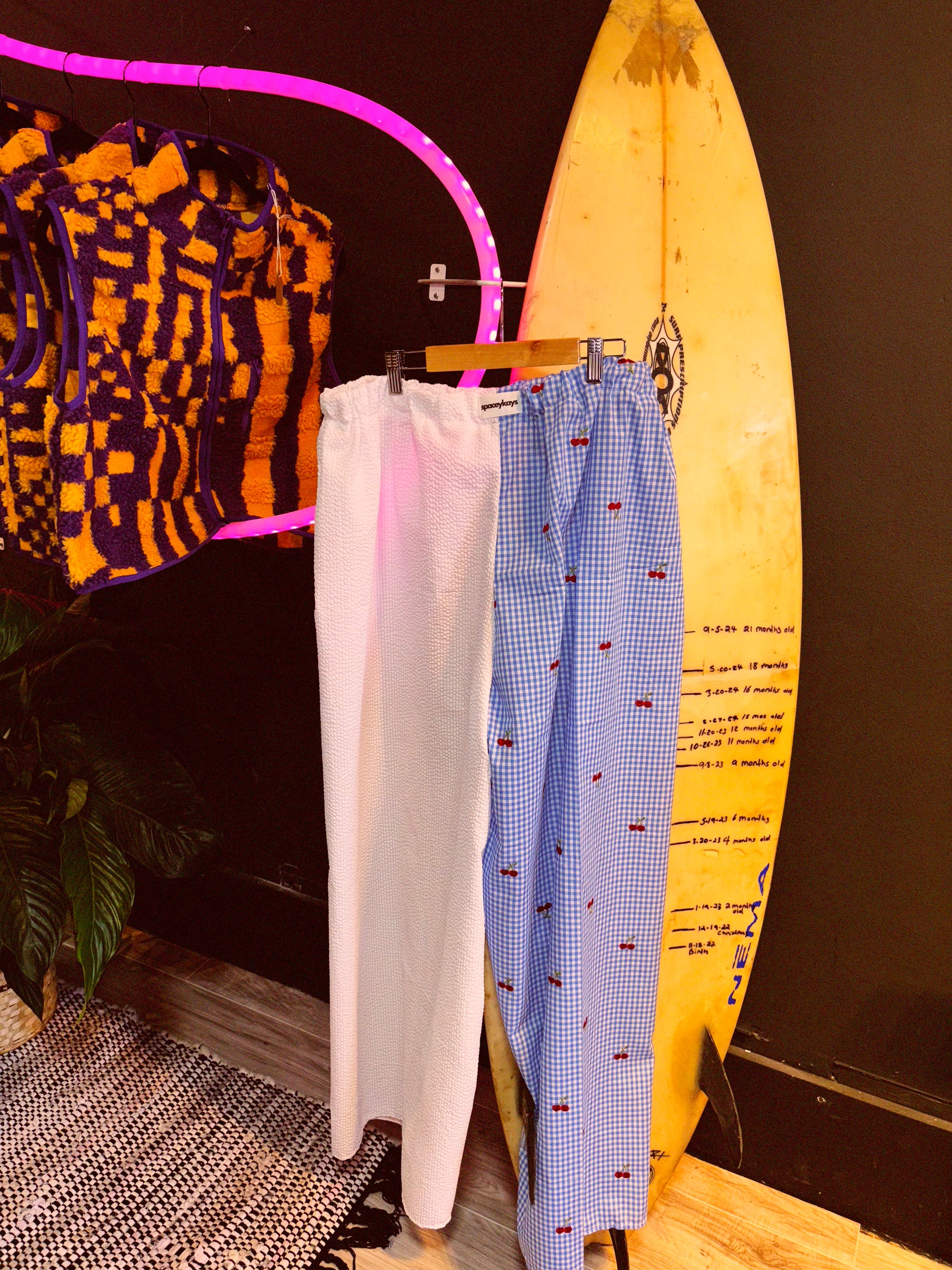 Get ready to unleash your inner cherry (bomb) in these fluffy white pants, featuring adorable embroidered cherries that scream “I’m fruity and fabulous!” Perfect for lounging or making a splash at the next garden party. Comfort level? Off the charts! Warning: may cause spontaneous dance-offs! 🍒✨ 32 inch inseam